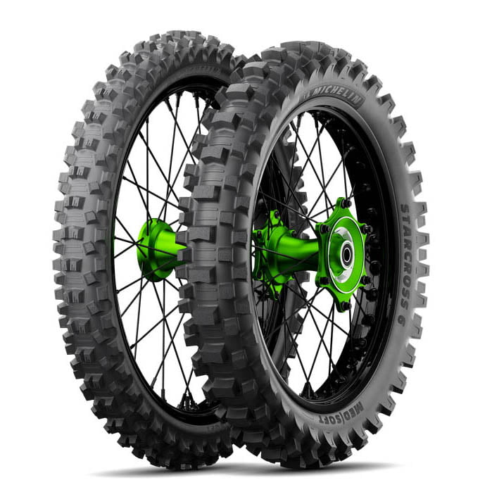 - Michelin Starcross 6 je zasnovan kot terenska motociklistična pnevmatika, ki omogoča predvidljivo in zanesljivo vedenje v najrazličnejših brezpotnih pogojih, od mehkih spomladanskih blatnih stez do trdnejših in kamnitih odsekov. Ni homologiran za uporabo na javnih cestah, saj je optimiziran za off-road in motokros rabo.